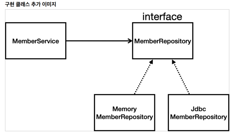 그 부분을 멤버리포지토리(인터페이스) 변수로 바꾸어준다.