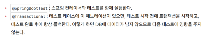 이렇게되면 다음에 또 회원가입을 테스트할때 중복회원이 있는지 검사하는부분에서 걸리게되어 테스트를 통과하지못하게된다.