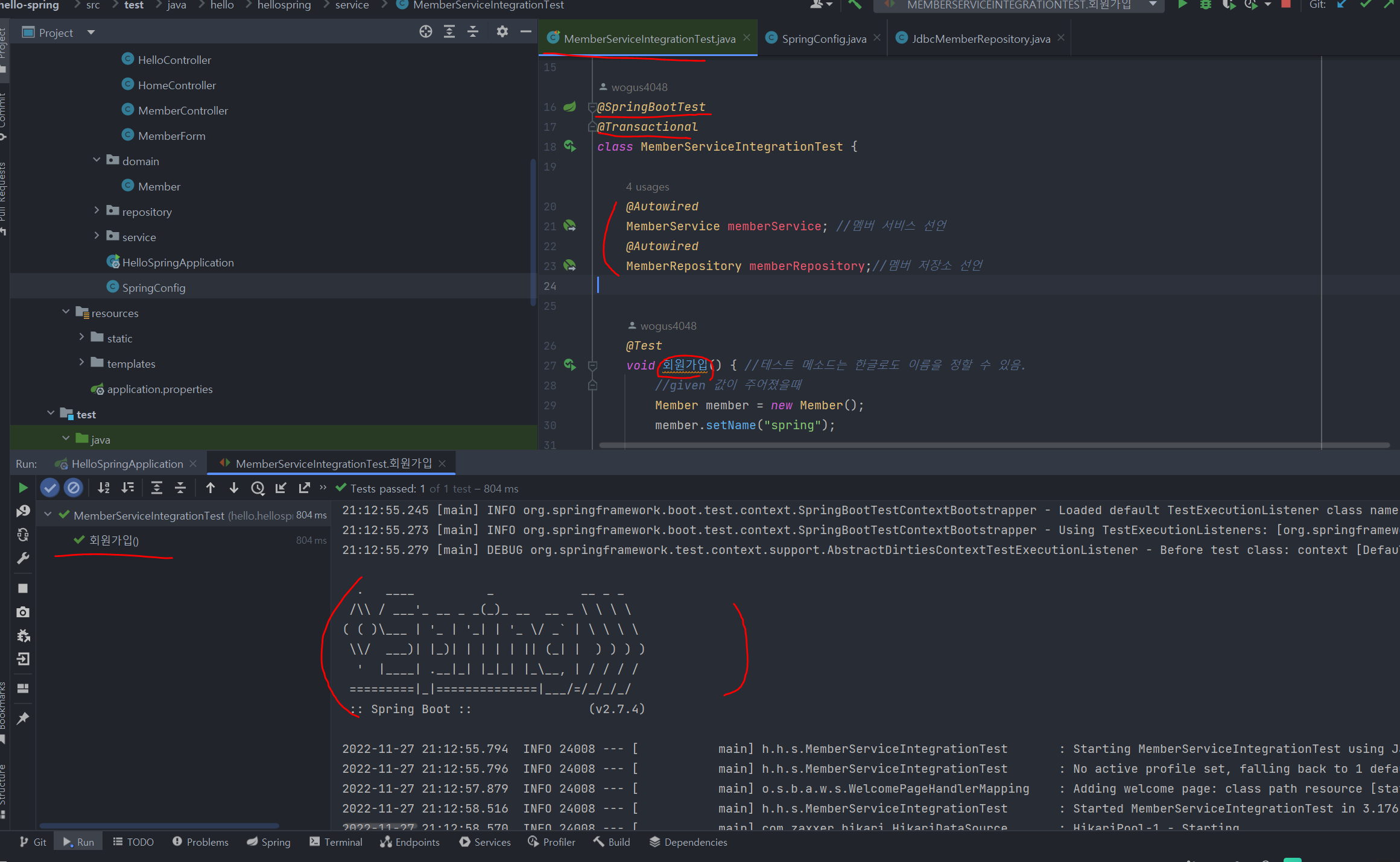 void 회원가입() { //테스트 메소드는 한글로도 이름을 정할 수 있음.