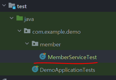 MemberServiceImpl을 참조하게 하고 , MemberServiceImpl은 MemmoryMemberRepository를 잘사용하는지 체크하는 테스트