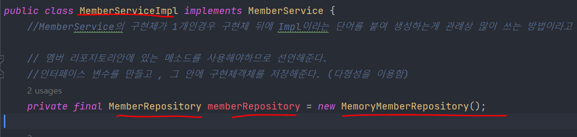 private final MemberRepository memberRepository = new MemoryMemberRepository();