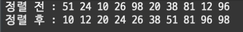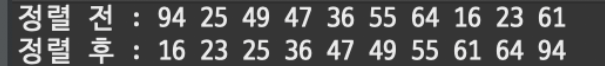 + 앞에서 뒤에꺼를 비교하는것이 정석 -> 정석 == 오름차순