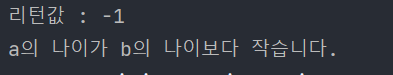그것을 위에 코드에서 return 1(양수), return 0 , return -1(음수)로 표현한것이다.