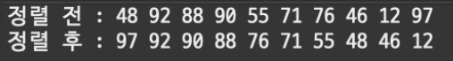 큰 원소가 작은 원소보다 앞에 있으므로 내림차순이다.