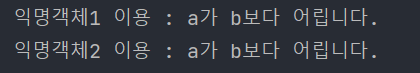 생성한 익명객체를 Arrays.sort()로 객체배열과 함께 전달해주면 익명객체안에 정의한 비교 방법을 기준으로 정렬해준다.