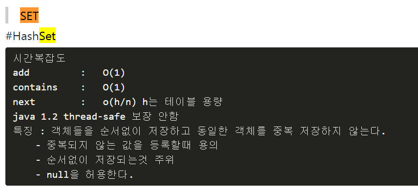 값이 있는지 체크하는 contains()메소드의 시간복잡도는 O(1)이다.