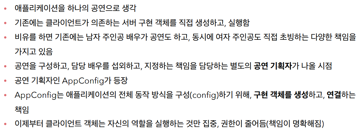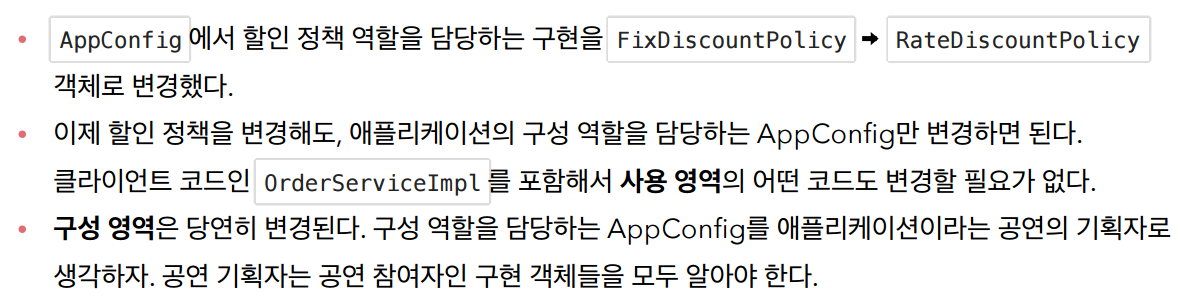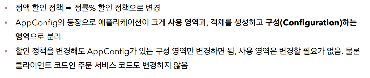 AppConfig 덕분에 사용영역과 , 객체를 생성하고 구성(환경설정)하는 영역으로 분리됨!