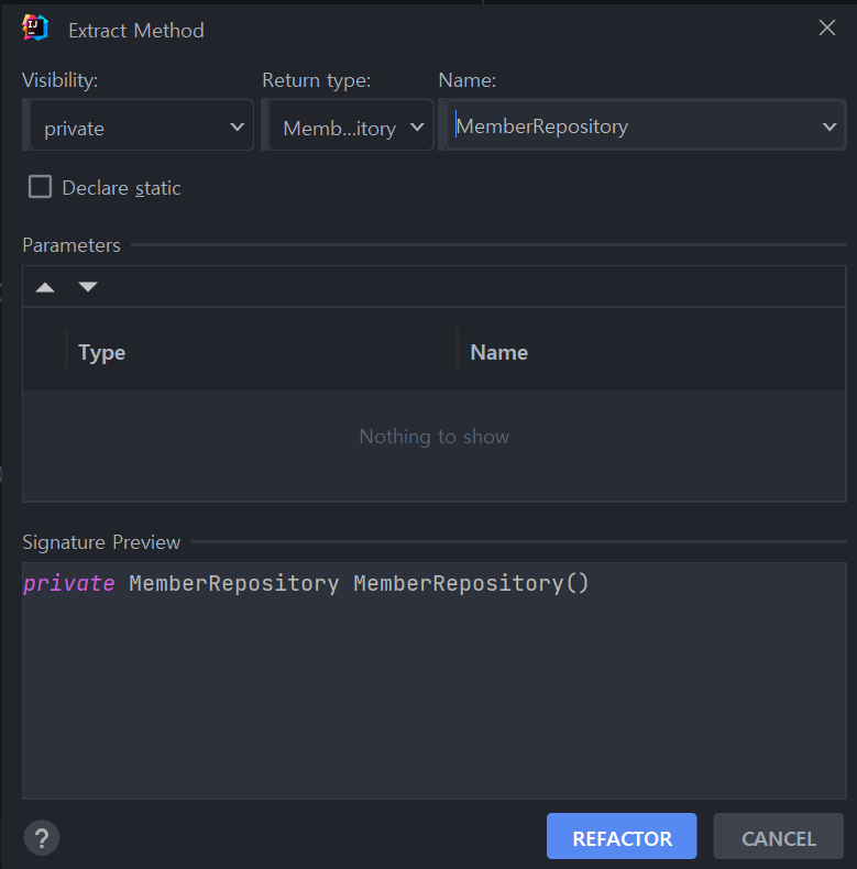 그리고 만약 멤버리포지토리 구현체가 바뀌게 된다면 멤버리포지토리 구현체를 적은곳 수만큼 코드수정이 생긴다.