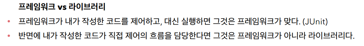 프레임워크와 라이브러리를 구분할때 IoC(제어의 역전)이 중요하다.