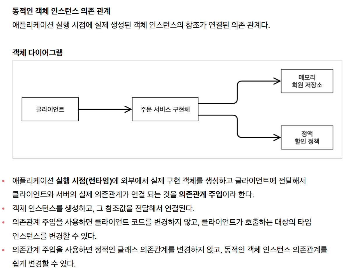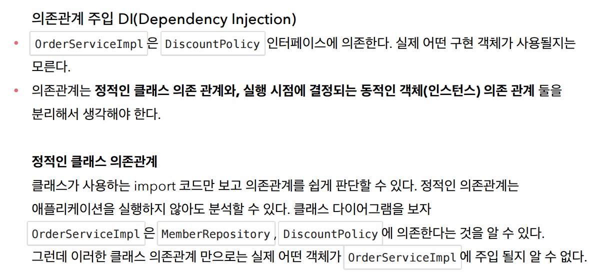 -> ex) 멤버서비스임플 구현체의 코드를 짜면서 그 안에서 필요한 객체인 메모리멤버리포지토리 구현체도 생성하면서 넣연결하고 실행했던것 처럼