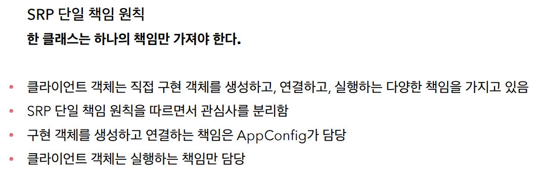 AppConfig를 생성하면서 클라이언트 객체는 실행하는 책임만 담당한다.